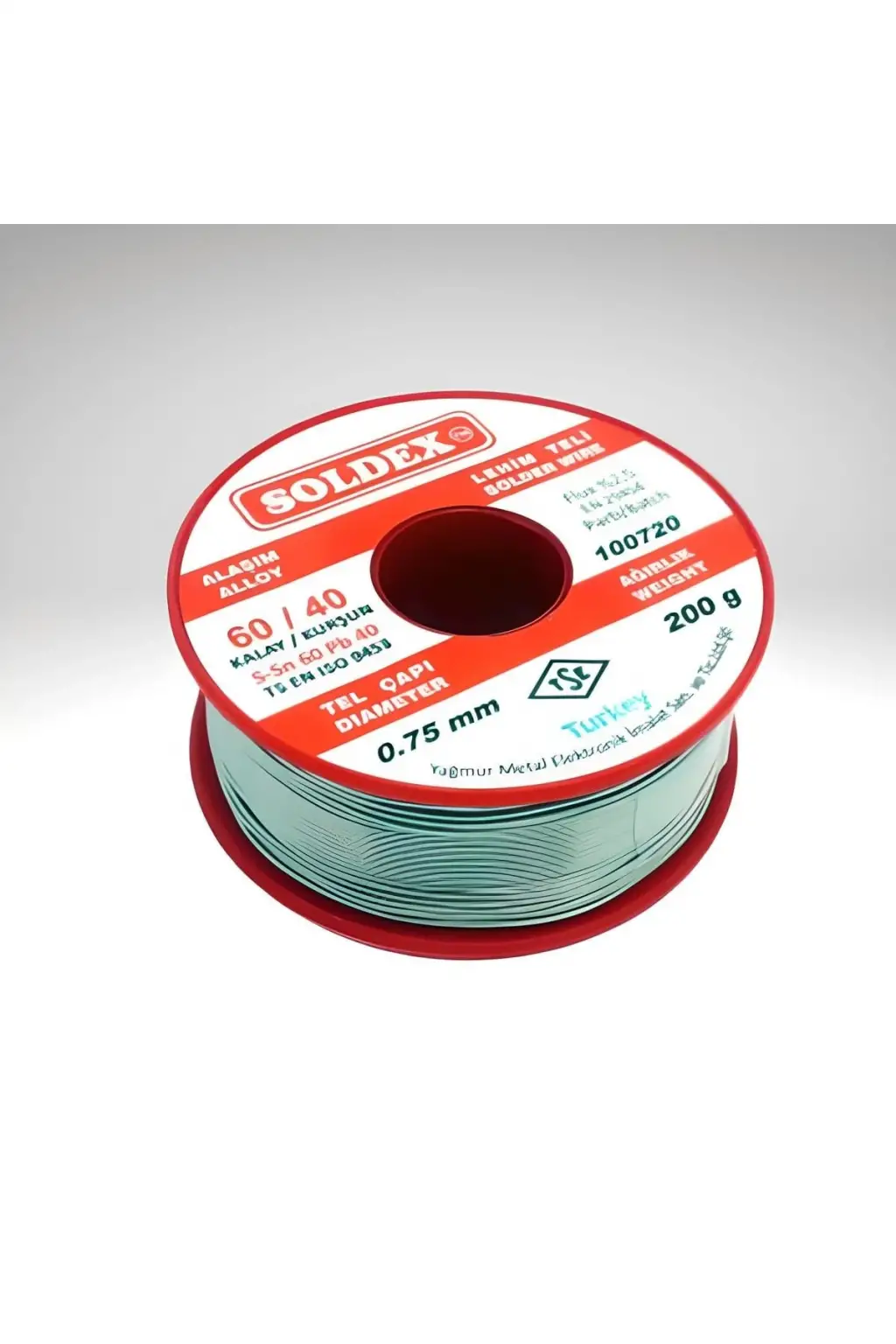 Soldex Lehim Teli 0.75MM 200gr (SN60 PB40) Tv, elektronik ve tüketim mallarına dünya çapında kullanılan, flux içeren bir tel lehim türüdür. Birinci sınıf hammaddeler ile en yüksek saflıkta kalay ve kurşun alaşımları ile 5 kanallı olarak, kanallarında ağırlıkça nominal % 2 oranında flux içeren şekilde üretilmektedir. Soldex Lehim Teli Kullanım AlanlarıElektrik, elektronik uygulamalarda, yüksek sıcaklıkta çalışan parçaların lehimlenmesinde kullanılır. Araç motorları, bobinaj motorları vb.