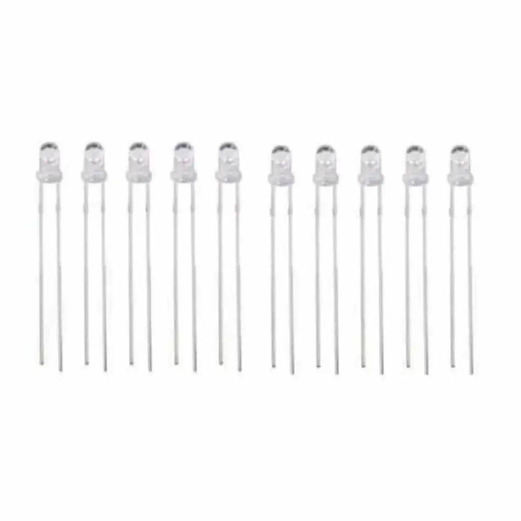 3mm şeffaf beyaz LED("Light Emitting Diode", Işık Yayan Diyot), elektronik devrelerde sıklıkla kullanılan bir devre elemanıdır. Renk ve boyutuna göre 1.6-4V arasındaki gerilim ile çalışır. Bu gerilim değerlerinin üstünde çalıştırıldığında led diyota düşük dirençli seri direnç bağlanmalıdır.