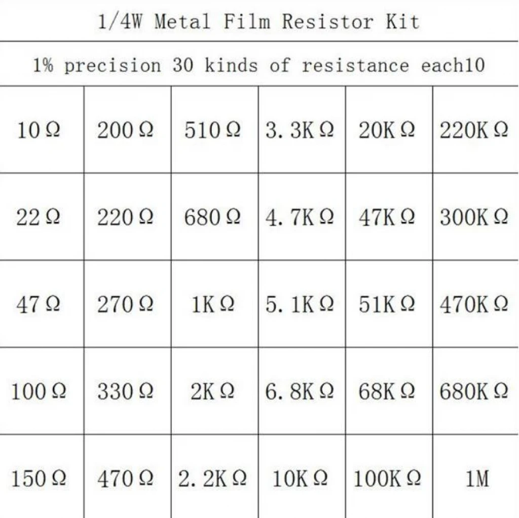 600 Parça 30 Çeşit Direnç Seti - 1/4W