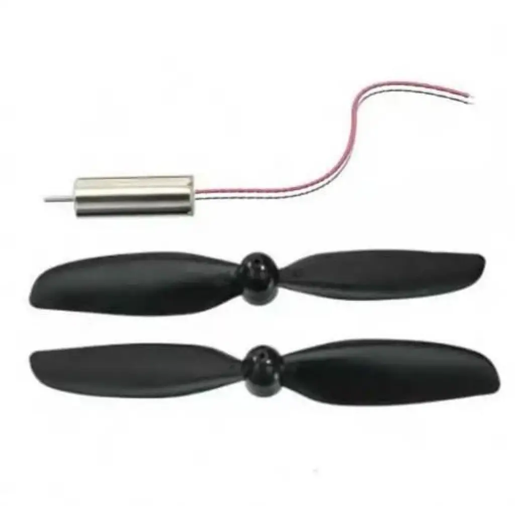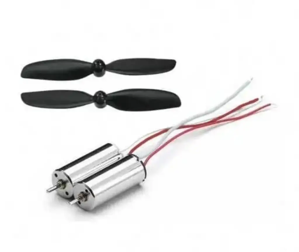 Bu DC motor pervane setinde saat yönünde dönen ve tam tersi yönde dönen 2 adet 820 çekirdeksiz dc motor, sağ ve sol olmak üzere 2 adet pervane bulunmaktadır. Eğlenceli mini drone yapımı için hazılanmış olan bu set maliyetinin düşük olması sebebiyle tercih sebebidir. CW ve CCW motorların çapı 8.5mm , yüksekliği şaft hariç 20mm ve şaft 1.0mm dir. Çalışma gerilimi 3.2VDC olan bu motorlar yüksek rpm ve düşük gürültüleri sebebi ile tercih sebebi olabilir.