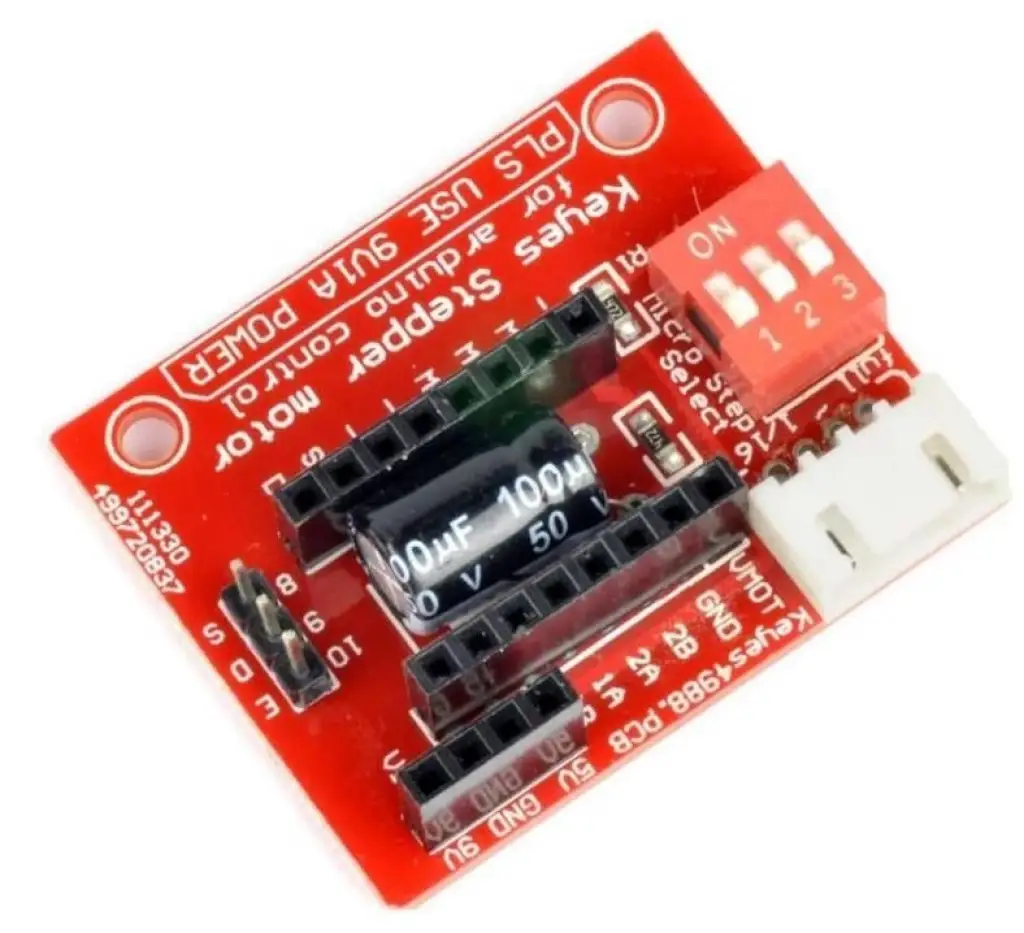 Güç girişi için ürün üzerindeki dişi pinler, motor kontrolü için ise erkek pinler kullanılmalıdır. Adım çözünürlüklerini ayarlamak için üzerindeki dip switch kullanılmaktadır.