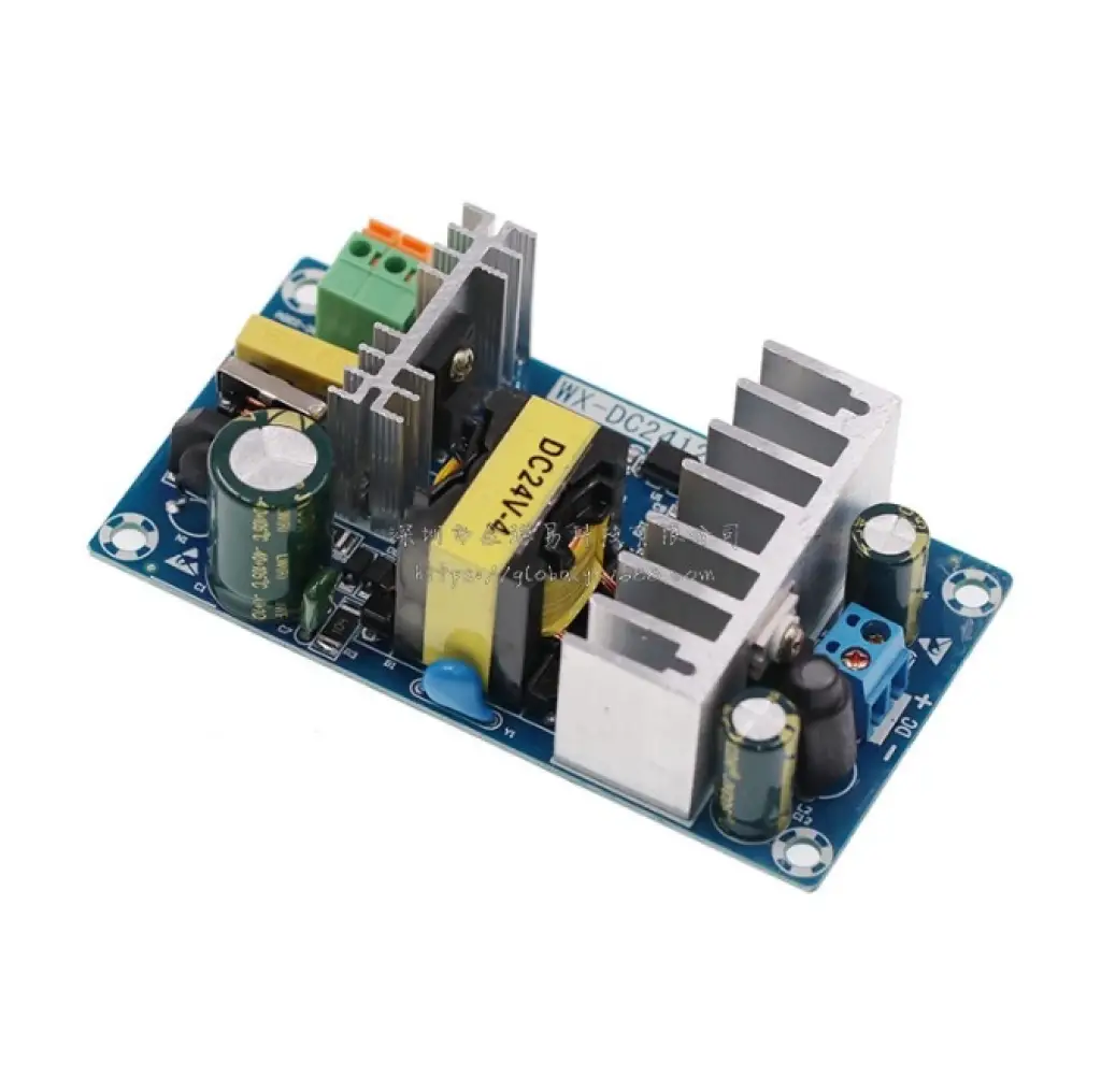 AC-DC Dönüştürücü Modül 220V / 24V 4A, şehir elektriği (220V AC) girişini 24V DC çıkışa dönüştürerek elektronik devrelerin, LED aydınlatmaların, motor sürücülerin, sensörlerin ve endüstriyel sistemlerin beslenmesinde güvenli güç kaynağı sağlar.