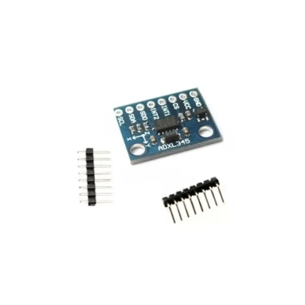 ADXL345 3 Eksen İvmeölçer; ADXL345, küçük, düşük güç tüketimine sahip 3 eksende çıkış verebilen bir açısal ivme ölçer sensörüdür. ±16g'lik bir algılama alanına sahip olup, I²C hattı üzerinden ve SPI hattı üzerinden çıkış alınabilir.