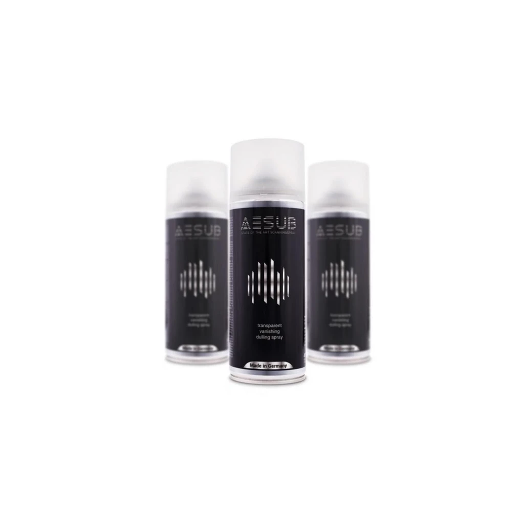 AESUB şeffaf, parlak yüzeyleri şeffaf bir filmle geçici olarak matlaştıran bir tarama spreyidir. Bu, optik tarayıcıların yalnızca yüzey hatlarını değil aynı zamanda ölçülen nesnenin renk değerlerini de yakalamasına olanak tanır. AESUB şeffaflığı kaybolduğu için temizlemeye gerek yoktur.
