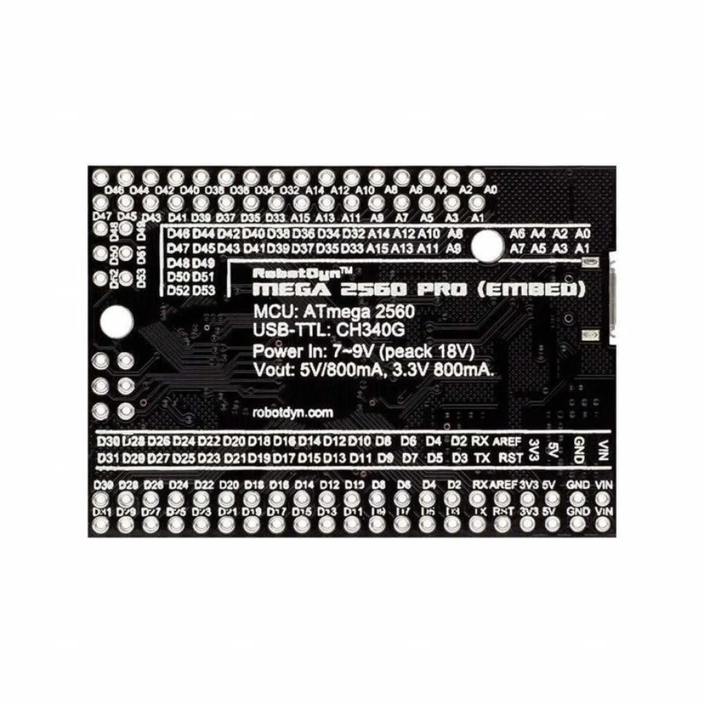 Arduino Mega2560 Pro Mini Geliştirme Kartı, ATmega2560 mikrodenetleyici ve USB-UART adaptörü CH340'a dayanmaktadır. Kart Arduino Mega 2560 ile uyumludur. Pano 38x55mm'lik kompakt bir form faktörüne sahiptir ve ATmega2560'a dayalı projeler geliştirmek için mükemmel bir çözümdür. Mega Pro Embed işlevleri Arduino Mega 2560 ile aynıdır. Bir Embed kartı olmasına rağmen Mega Board gibi sağlamdır. Orijinal çipi kullanır ve kartta 16 MHz yüksek kaliteli kuvars rezonatörleri bulunur.