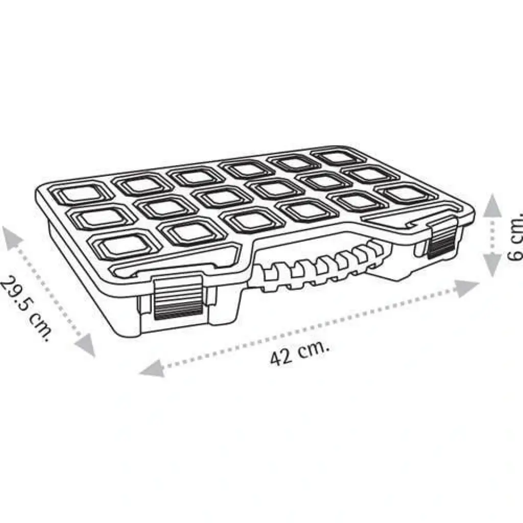 Sağlam gövde yapısı, darbeye dayanıklı tasarımı ve kilitlenebilir kapak mekanizması sayesinde uzun süreli kullanım sunar. İç kısımda bulunan 18 ayrı bölme, parçaların karışmasını engeller ve düzen sağlar. Şeffaf kapak tasarımı sayesinde kutuyu açmadan içerik görüntülenebilir, bu da hızlı seçim ve pratik kullanım imkânı verir.