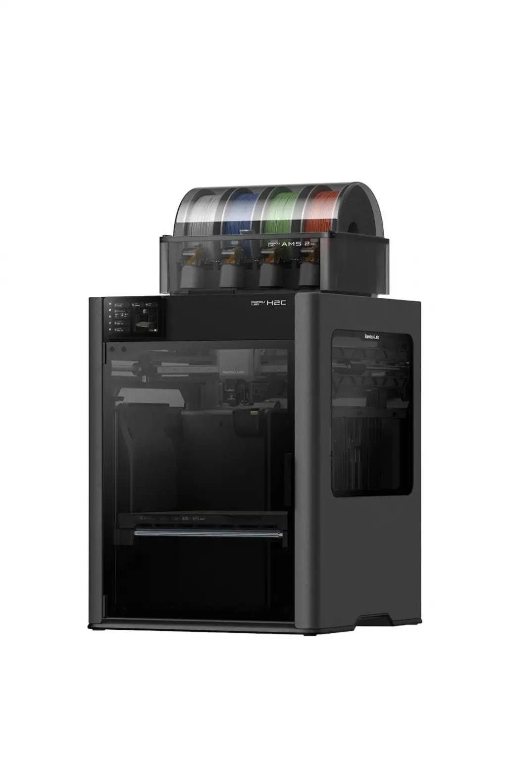 *Bu model, özellikle kurumsal ortamlarda güvenli kullanım için geliştirilmiş kapsamlı bağlantı ve güvenlik özelliklerine sahiptir. Wi-Fi (WPA2-Enterprise desteğiyle) ve Ethernet bağlantı seçenekleri sayesinde H2D Pro’yu ofis ağınıza kolayca ve güvenle entegre edebilirsiniz. Dilerseniz fiziksel ağ kapatma anahtarını (kill-switch) kullanarak cihazın kablosuz veya kablolu iletişimini tek tuşla devre dışı bırakıp yetkisiz erişimleri önleyebilirsiniz. Ayrıca yazıcıyla birlikte gelen Bambu Lab AMS 2 Pro otomatik malzeme besleme sistemi ve AMS HT modülü, birden fazla filament rulosunu aynı anda kullanmanıza ve malzemeler arasında kesintisiz geçiş yapmanıza imkan tanır. AMS sistemi, filamentlerin nem kontrolünü sağlayarak özellikle yüksek sıcaklık gerektiren filamentlerde sorunsuz ve güvenilir besleme sunar.
