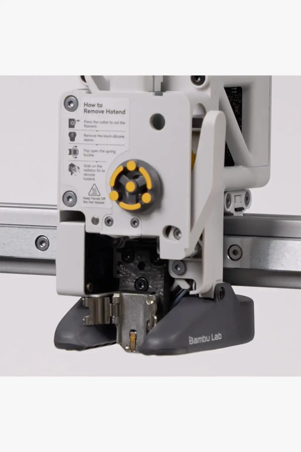 • Hotend Isıtma Montajı, hotend'in hızlı değişim tasarımını desteklemek üzere özel olarak tasarlanmıştır. Isıtıcı bloğu ve ısıtma tabanını sabitlemek için hızlı bir kelepçeleme mekanizması kullanılır, böylece hotend'in termal ve elektronik bileşenlerinin kolayca ayrılması sağlanır. Hotend ısıtma montajı, hotend'i 300℃'ye kadar ısıtabilir ve dahili termistör ile gerçek zamanlı sıcaklık ölçümü yapabilir.