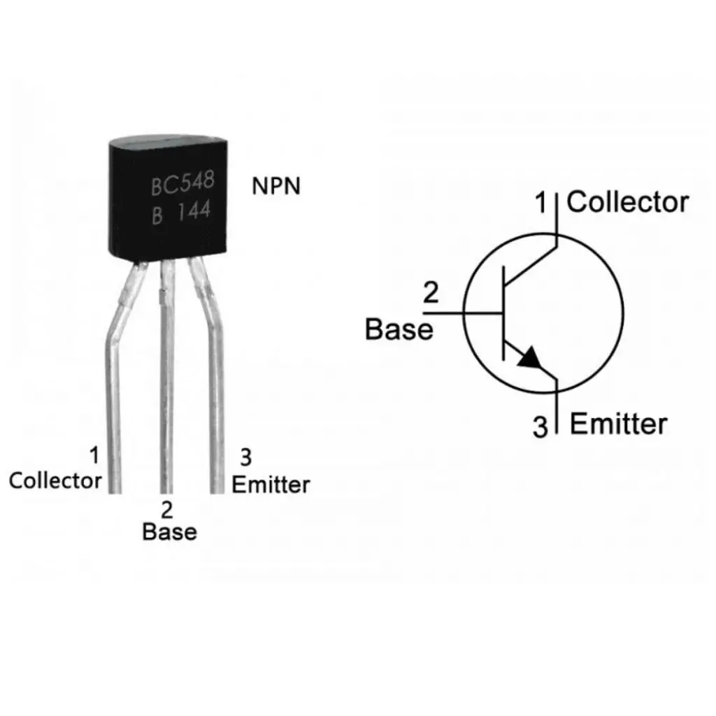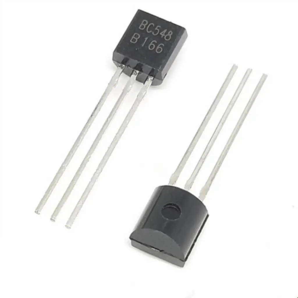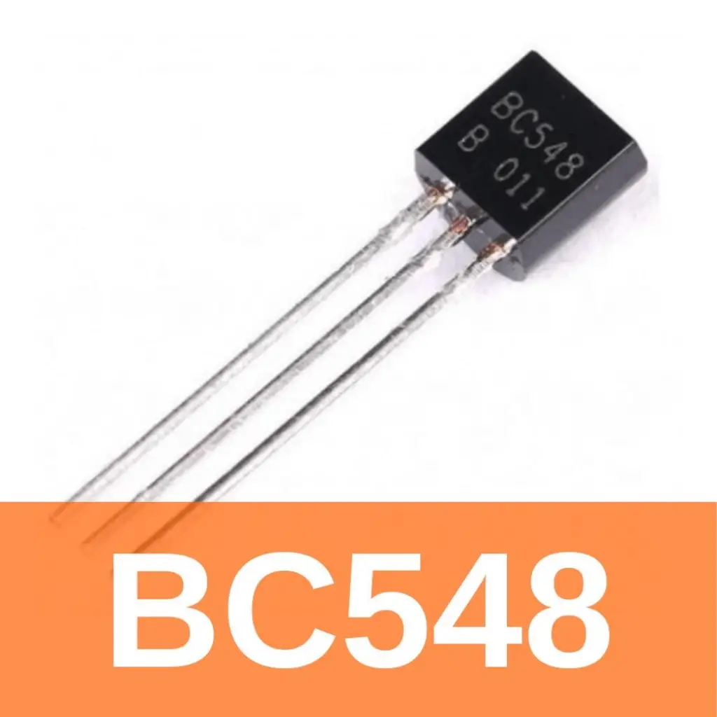 BC548, düşük güçlü ve genel amaçlı uygulamalar için kullanılan bir NPN bipolar jonksiyon transistörüdür (BJT). Küçük sinyalli anahtarlama ve amplifikasyon işlemlerinde yaygın olarak tercih edilir. Yüksek kazanç (hFE) değeri, düşük gürültü seviyesi ve geniş çalışma voltaj aralığı sayesinde birçok elektronik devrede kullanılabilir. Sensör devreleri, anahtarlama devreleri, düşük güçlü amplifikatörler ve dijital lojik devrelerde sıkça yer alır. Plastik TO-92 kılıfında üretilen bu transistör, kolay montaj ve lehimleme avantajı sunar.