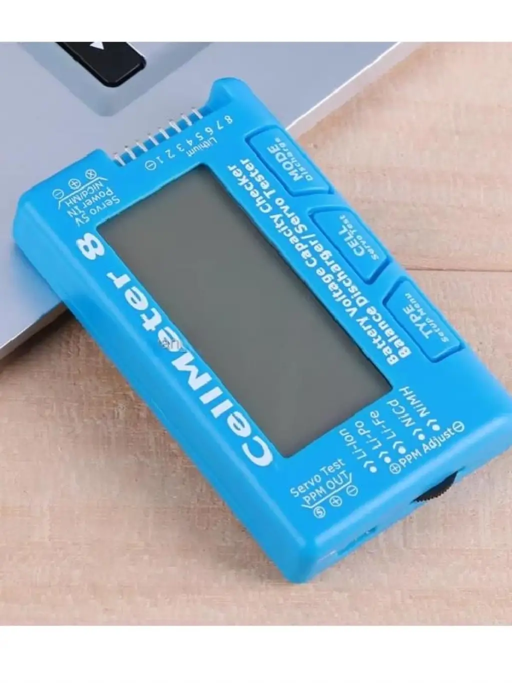 Bu RC CellMeter-8 dijital pil kapasitesi denetleyicisi, LiPo, LiFe, Li-ion, NiMH, Nicd piller için kullanılabilir.