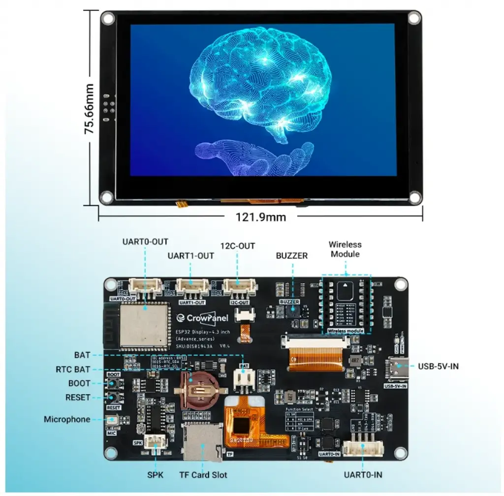 CrowPanel Advance 4.3" ESP32-S3 HMI Dokunmatik Ekranlı (480x272)