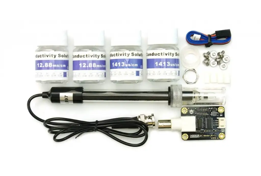 Elektriksel iletkenlik ölçer V1'in yükseltilmiş bir versiyonu olan bu ec metre ürünü, kullanıcı deneyimini ve veri hassasiyetini büyük ölçüde artırır. 3 ~ 5v geniş voltaj girişini destekler ve 5V ve 3.3V ana kontrol panosu ile uyumludur; Donanım tarafından filtrelenen çıkış sinyali düşük titremelere sahiptir; Uyarım kaynağı, polarizasyon etkisini etkili bir şekilde azaltan, hassasiyeti artıran ve probun ömrünü uzatan AC sinyalini benimser; Yazılım kütüphanesi iki noktalı kalibrasyon yöntemini kullanır ve standart tampon çözeltisini otomatik olarak tanımlayabilir, bu nedenle basit ve kullanışlıdır. DFRobot, çeşitli su kalitesi sensörü ürünleri, tek tip boyut ve arayüz sağlar, yalnızca çeşitli su kalitesi testlerinin ihtiyaçlarını karşılamakla kalmaz, aynı zamanda çok parametreli su kalitesi test cihazının DIY'si için de uygundur. İletkenlik, malzemenin akımı taşıma yeteneğiyle ilgili olan direncin tersidir. Sıvıda, direncin tersi olan iletkenlik, elektriği iletme yeteneğinin ölçüsüdür. İletkenlik, su kalitesinin önemli bir parametresidir. Suda bulunan elektrolitlerin derecesini yansıtabilir.