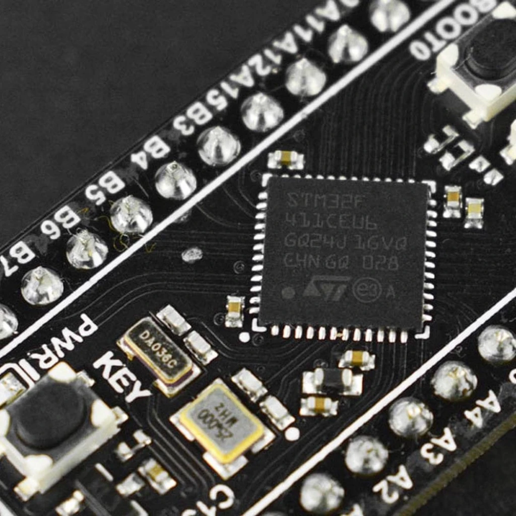 Üzerinde yer alan STM32F411CEU6 mikrodenetleyici, 512KB ROM, 128KB SRAM kapasitesine sahiptir ve 100MHz frekansta çalışır.