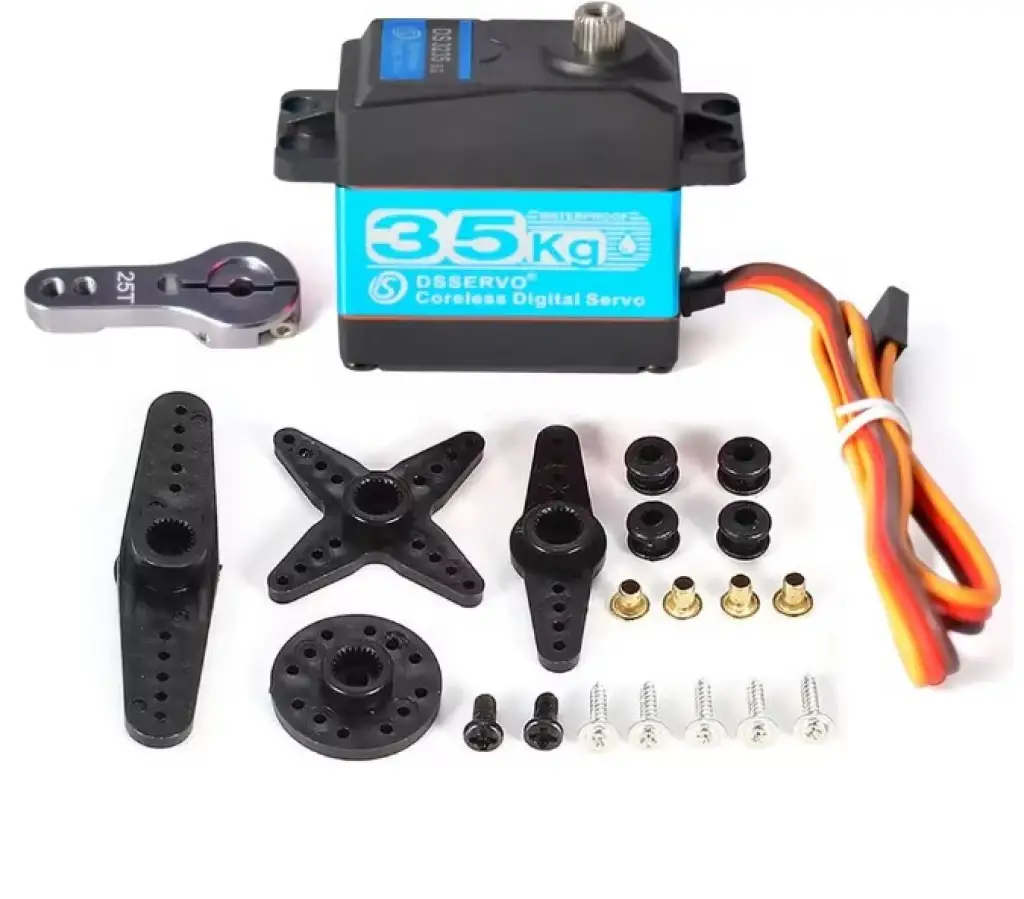 DSSERVO DS3235, yüksek tork kapasitesi ve dayanıklılığı ile öne çıkan 35 kg/cm tork gücüne sahip, su geçirmez bir dijital servo motordur. RC araçlardan robot projelerine kadar birçok uygulamada kullanılabilecek şekilde tasarlanmıştır. 180° dönüş açısı sayesinde hassas konum kontrolü sunar. Metal dişli yapısı uzun ömür ve dayanıklılık sağlar.