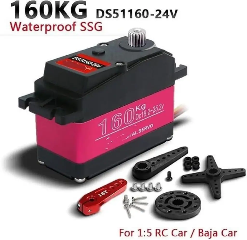 24V Servo 160Kg 5B 1/5 DS51160 Yüksek Torklu Dijital Servo (DS51160-24V-180), yüksek tork gerektiren uygulamalar için tasarlanmış dijital bir servodur. Özellikle 1/5 ölçekli RC araçlar, robotik projeler ve endüstriyel otomasyon sistemlerinde kullanılır.