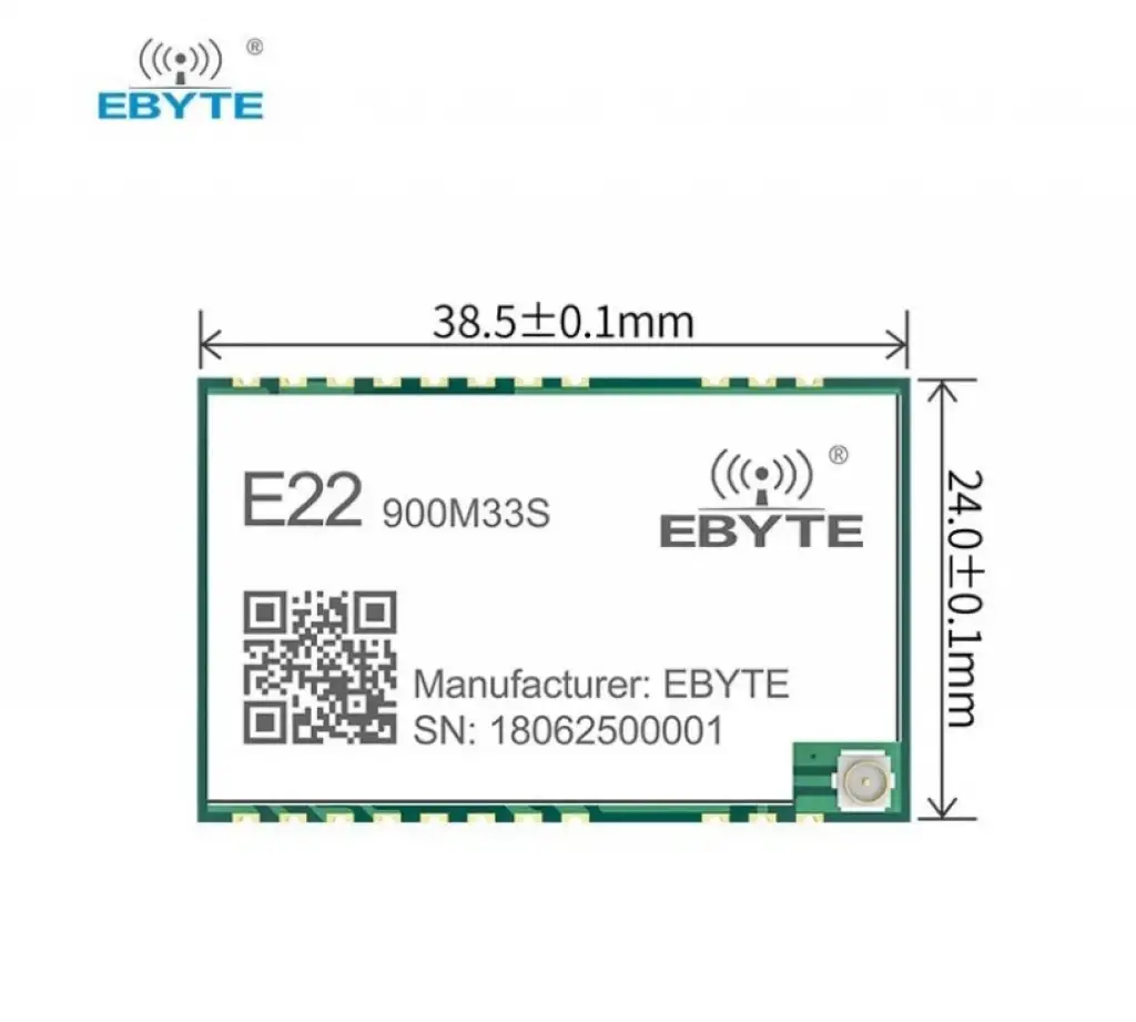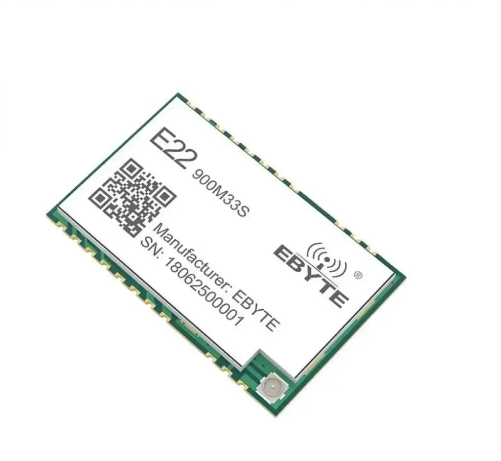E22‑900M33S, LoRa tabanlı bir RF alıcı-verici modülüdür. SX1262 çipi üzerine inşa edilmiş olup, düşük güç tüketimi ve uzun menzilli veri iletimi için tasarlanmıştır. 868 MHz ve 915 MHz frekans bandında çalışır ve SPI arayüzü ile mikrodenetleyicilere kolayca entegre edilebilir.