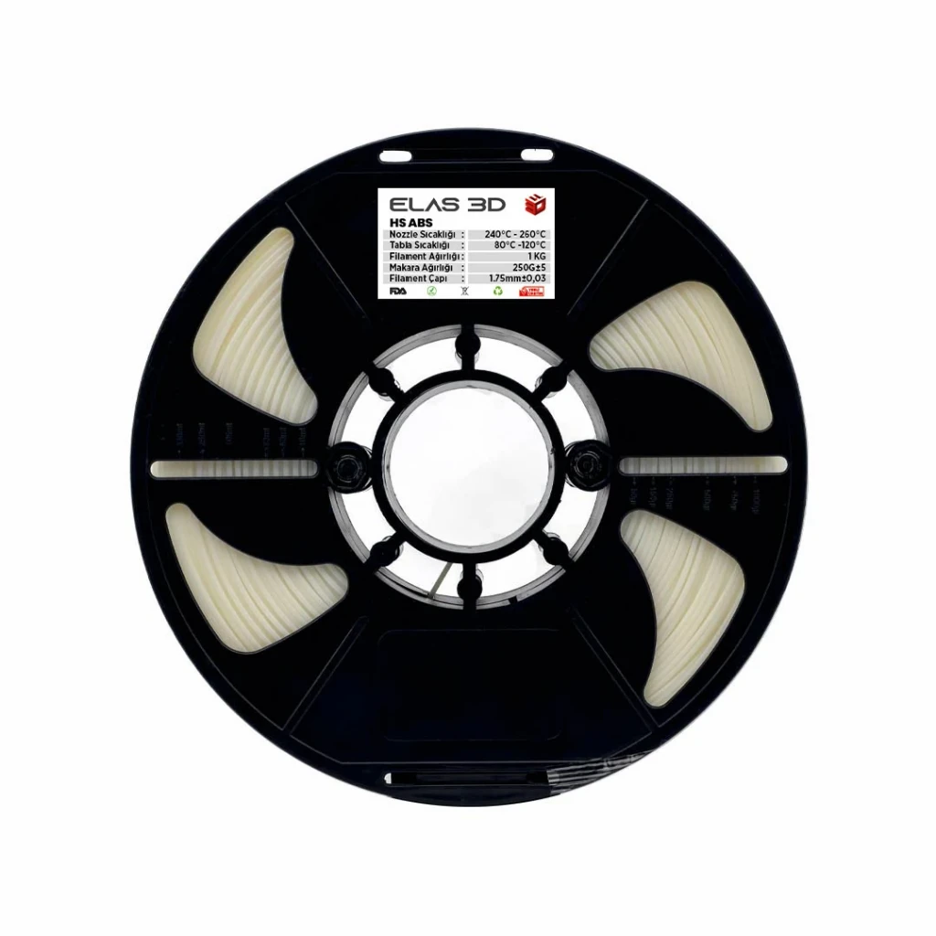 • Sağlamlık: ABS, dayanıklı ve esnek bir malzemedir. Elas 3D Natural Hs ABS filament ile basılan nesneler, darbelere ve aşınmaya karşı yüksek direnç gösterir.