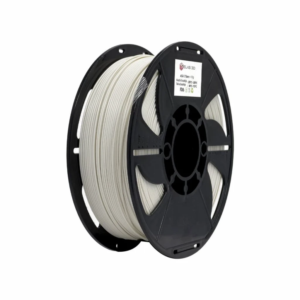 Elas Beyaz ASA Filament, 3D yazıcılarla kullanılmak üzere üretilmiş bir plastik filament türüdür. ASA (akrilinitril stiren akrilat) adı verilen bir polimerden yapılmıştır. Dayanıklı, hava şartlarına karşı dirençli ve UV ışınlarına dayanıklıdır.