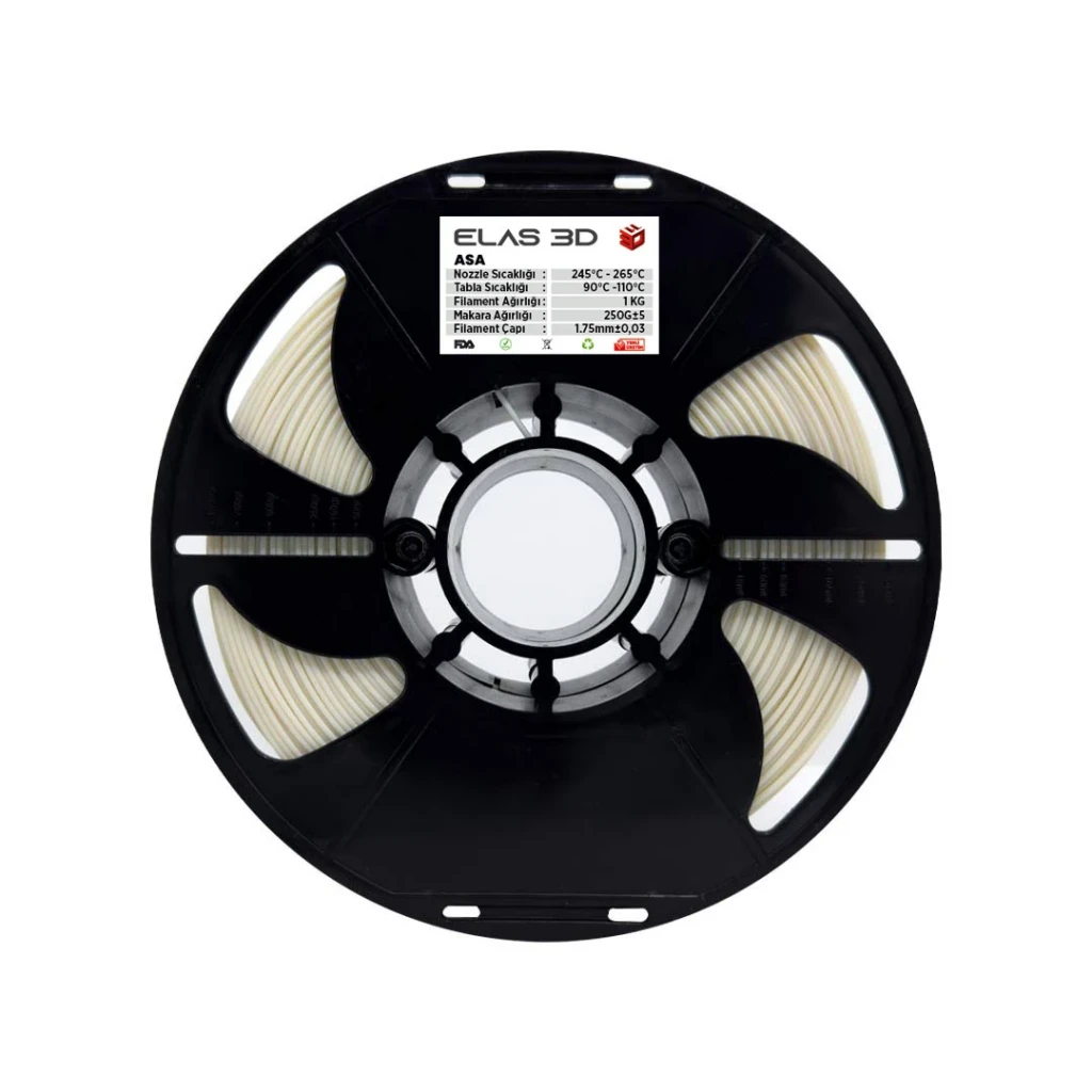 Elas Naturel ASA Filament, 3D yazıcılarla kullanılmak üzere üretilmiş bir plastik filament türüdür. ASA (akrilinitril stiren akrilat) adı verilen bir polimerden yapılmıştır. Dayanıklı, hava şartlarına karşı dirençli ve UV ışınlarına dayanıklıdır.