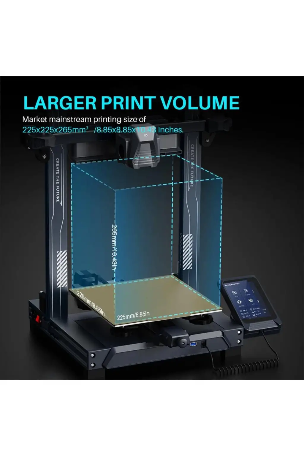 4,3 inç çıkarılabilir kapasitif ekran, 8 dili destekler ve elde taşınabilir veya makine tabanında sabit olarak kullanılabilir. Yazdırma ilerlemesini izlemek ve gerektiğinde ayarlamalar yapmak için basılı bir model önizlemesi ve yazdırmayı duraklatma işlevine sahiptir.
