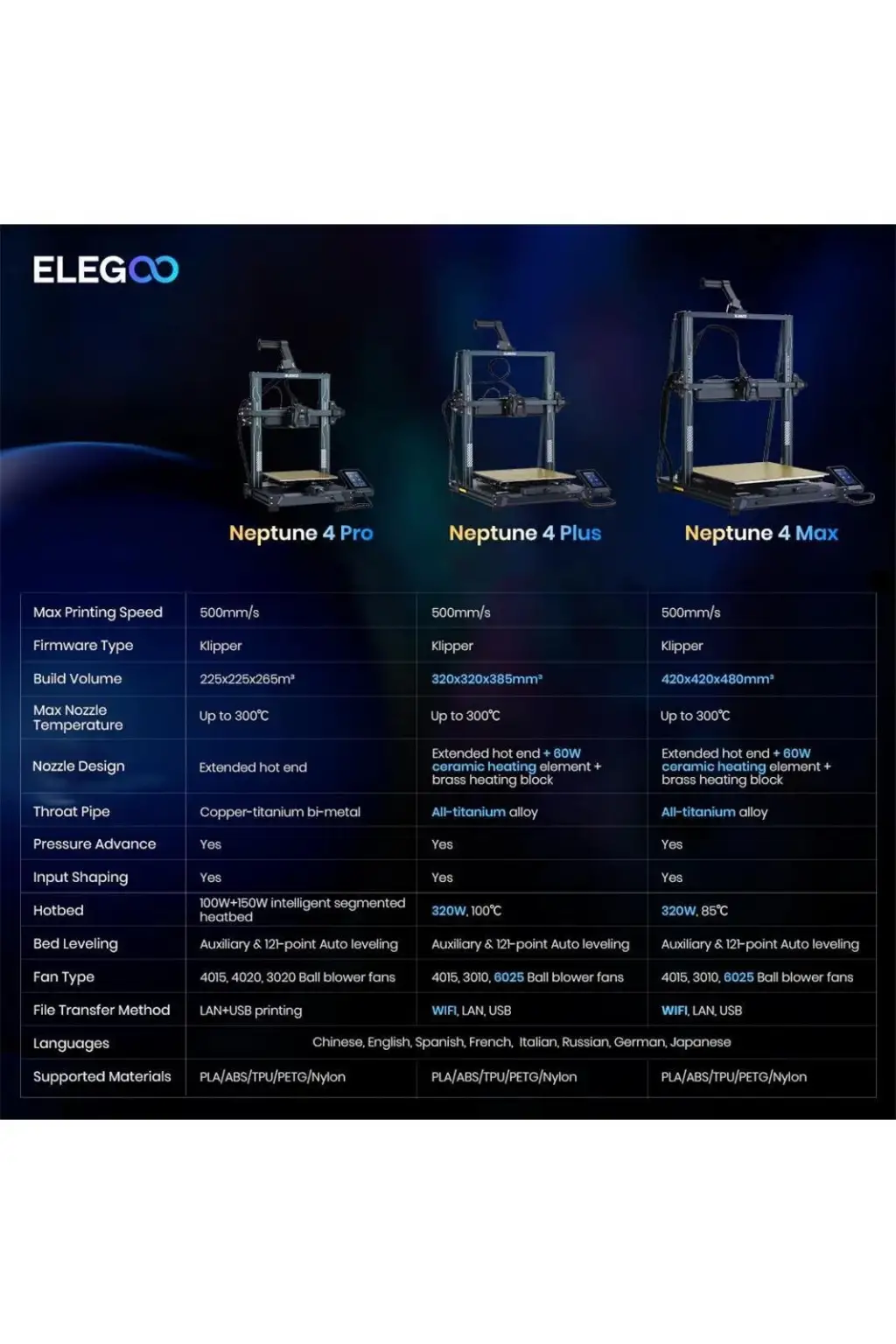 * Verimli Isı Dağılımı: ELEGOO Neptune 4 Pro ayrıca, yeni yazdırılan katmanları çok yönlü hızlı soğutmak için baskı kafasının arkasında 2 adet kalınlaştırılmış çift taraflı 4015 bilyeli soğutma fanı ve 4x4020 bilyeli üfleyici fan içerir. hızlı baskı hızı.