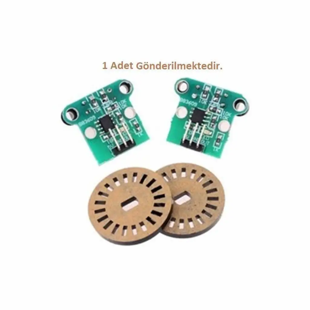 HC-020K dc motor hız ölçme sensörü 1 adet enkoder disk ve 1 adet optik okuyucudan oluşmaktadır.
