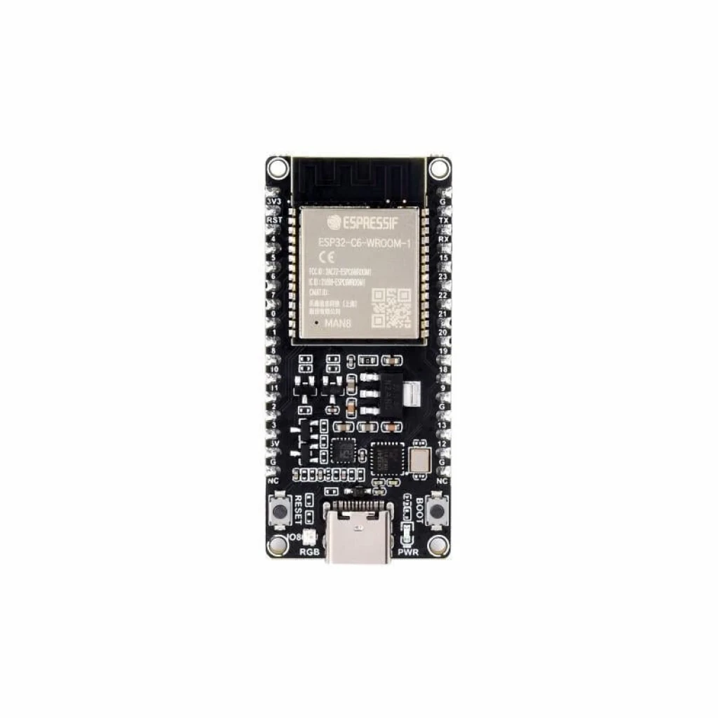 ESP32-C6-MINI-1, Espressif tarafından geliştirilen en yeni nesil kablosuz mikrodenetleyici modülüdür. Wi-Fi 6 (802.11ax), Bluetooth 5.0 LE, ve IEEE 802.15.4 (Thread/Zigbee) desteğiyle, IoT ve kablosuz haberleşme uygulamaları için güçlü bir altyapı sunar. Geliştirme kartı versiyonu, lehimlenmiş pinlerle birlikte gelir ve doğrudan prototipleme için hazırdır.