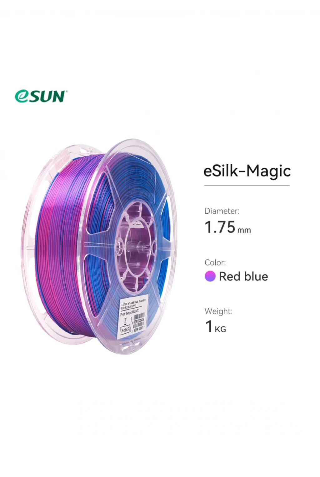 • Esun PLA-Silk Magic Çift renkli pla filament ile basılan model döndürüldüğünde iki farklı rengin getirdiği dinamik bir görünüme kavuşmaktadır. Diğer malzemelerle karşılaştırıldığında ePLA-Silk Magic'in soyulması daha kolaydır ve yüzeyi pürüzsüz ve düzdür; Bu sihirli pla filament, PLA'ya dayalı bir yükseltmedir ve aynı kolay baskı kalitesine sahiptir.