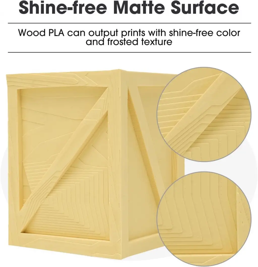 **Bu, ahşap gibi havalı bir görünüme sahip PLA tabanlı bir 3D baskı malzemesidir. PLA olarak kolay baskı ve pürüzsüz yüzey özellikleridir. 0.7g/cm3 düşük yoğunluklu PLA ile ahşap benzeri bir görünüm elde etmek için aktif köpük teknolojisini kullandı.