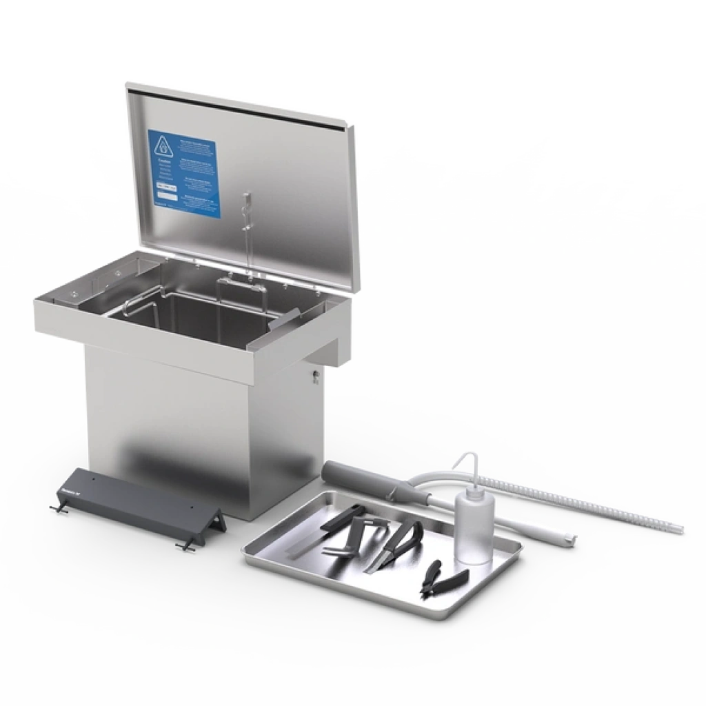Temizlik Aletleri seti, kurutma tepsisi, tank aleti, cımbız, kazıyıcı, sökme aleti, baskı platformu aparatı, durulama şişesi, pille çalışan solvent pompası, temizleme kesicileri ve tek kullanımlık nitril eldivenler içermektedir.
