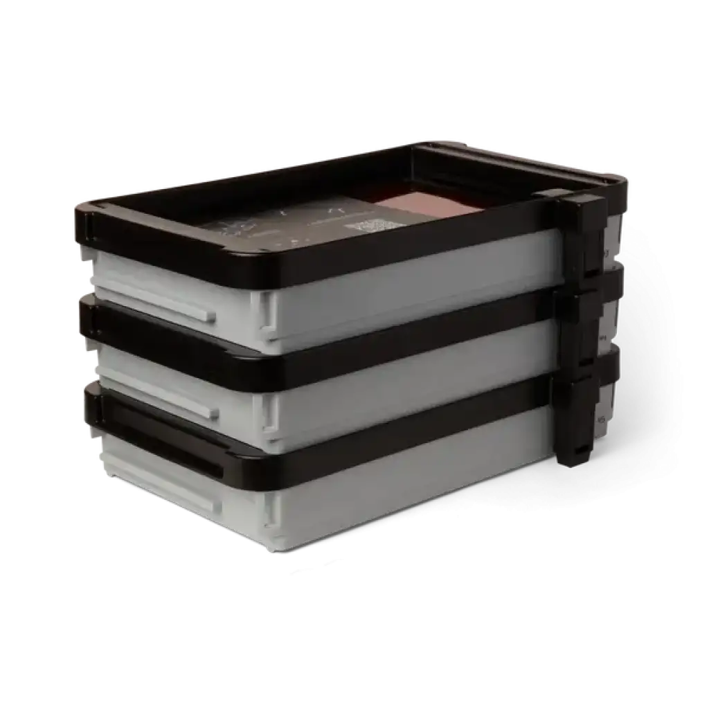 3D baskı teknolojisi, tutarlı ve yüksek kaliteli baskılar için esnek ancak güçlü çift katmanlı film tankı kullanır. Her reçine tankı, yeniden kullanılabilir bir kapağa sahiptir; bu da tankların üst üste istiflenmesini ve reçinenin makine dışında saklanmasını kolaylaştırır. Her bir reçine rengi veya türü için ayrı bir tank bulunduğundan, malzeme değiştirmek yeni bir tankı takmak kadar kolaydır.