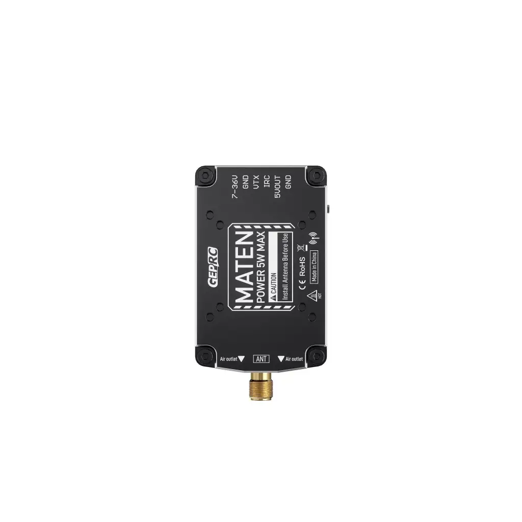 GEPRC tarafından geliştirilen MATEN 1.2G 5W VTX PRO, yüksek çıkış gücü ve gelişmiş donanımı sayesinde uzun menzil FPV uçuşlar için üstün performans sunar. Maksimum 5000mW çıkış gücü ile güçlü, stabil ve yüksek penetrasyonlu video iletimi sağlar.