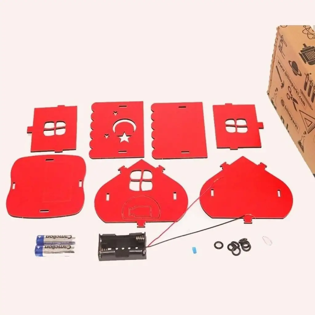 Çocukların STEAM setleri ile tanışması için harika bir başlangıç projesi. Çocuklar, bu setle ahşap parçaları birleştirerek 3 boyutlu bir ev ortaya çıkartacak, aynı zamanda evin içine kuracakları elektrik devresi ile eve gece lambası işlevi kazandıracaklar.