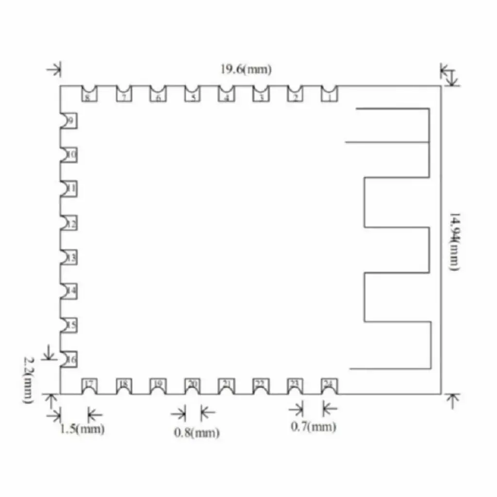 Modül boyutu 19,6 * 14,94 * 1,8 mm (uzunluk, genişlik ve yükseklik)