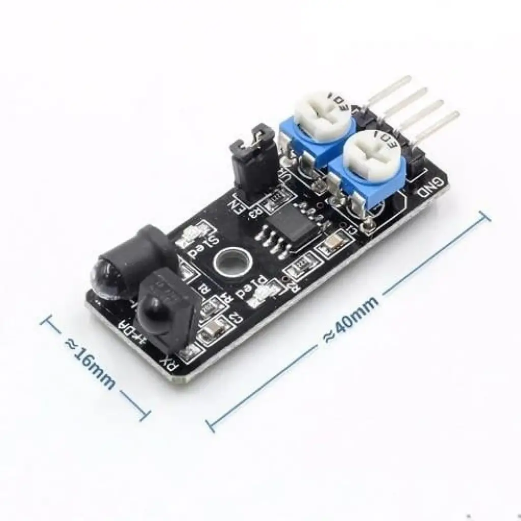Bu küçük boyutlu kızılötesi engel algılama sensörü pek çok projede kulanıma uygundur. Hızlı ve kolay bir şekilde bağlantıları yaparak projenize hemen ekleyebilirsiniz. Arduino raspberry ve diğer mcu kitleri ile kullanılabilir. Ir verici ledden yollanan ışınlar engele çarpıp alıcı led üzerinden algılanır. Bir karşılaştırıcı zamanlayıcı devre ile mesafenin algılanması sağlanır. Modül üzerindeki 2 adet potansiyometre ile hassasiyet ayarı yapılabilir. Bir tanesi ir verici ledin frekansını diğeride duty cycle ayarlaması içindir.
