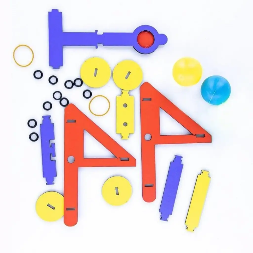 Kutu içeriği: 10 adet lazer kesim ahşap parçalar, 2 adet pinpon topu, 2 adet lastik, 6 adet oring, 2 parçalı ahşap hedef tahtası, yapım kılavuzu