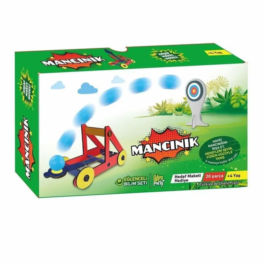 Gündelik hayatımızı kolaylaştıran, basit makine çeşitlerinden biri olan mancınık, daha az kuvvetle daha fazla iş yapıldığını deneyimleme olanağı sağlar. Parçaları birleştirilerek oluşturulan bu kendin yap setini tamamlayan çocuklar, doyasıya eğlenerek oynayacakları bir ürünü üretmenin keyfini çıkaracaklar.