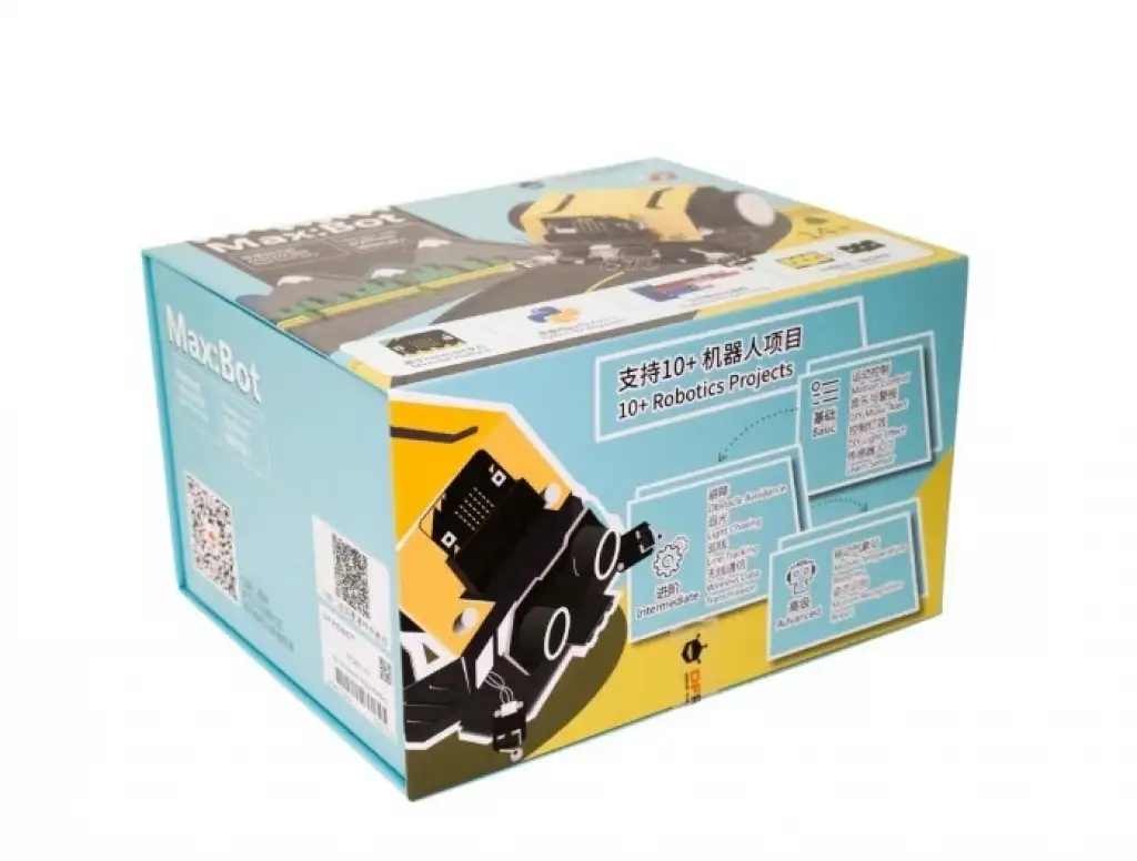 Maxbot Çocuklar İçin Programlanabilir Robot Kiti 8 yaş ve üzeri çocuklar için, 10'dan fazla elektronik modül içeren kendin yap robot kiti. Scratch, Python ve JavaScript ile programlanabilir. Robotik alanında yaratıcılığı ve öğrenmeyi teşvik eder. Çocuklara Max:Bot'u kullanarak müzik çalmayı, çizgiyi takip etmeyi, boşluklardan kaçınmayı, mesafeyi algılamayı ve hatta diğer Max:Bot'larla iletişim kurmayı öğreten ayrıntılı ve canlı ders materyalleri.
