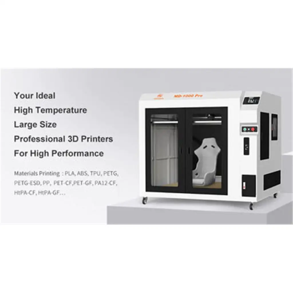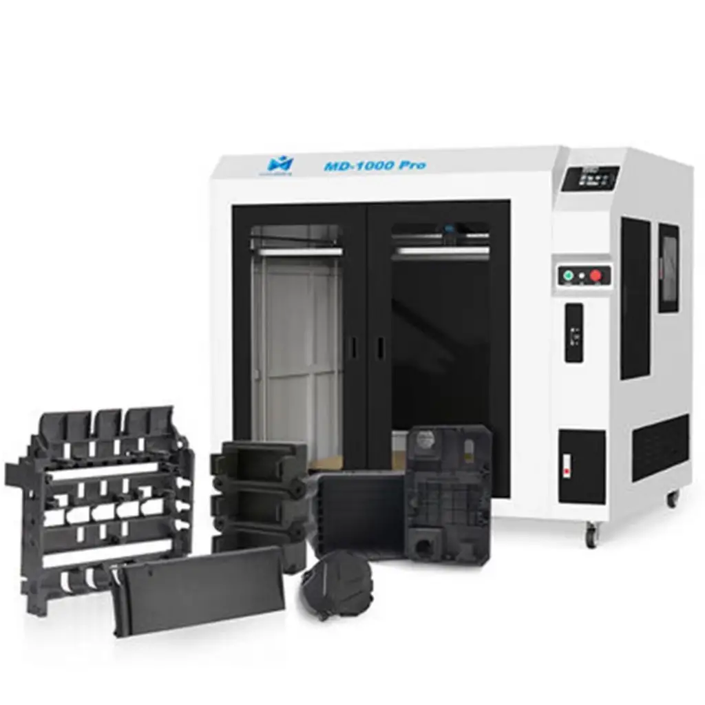 Bir metreküp basım hacmine sahip MINGDA MD-1000 PRO; işlevsel prototipler, fabrika takımları, desenler ve kalıplar ve son kullanıcı ürün parçaları dahil olmak üzere büyük boyutlu parçalar üretmek için tamamıyla kapalı bir endüstriyel 3D yazıcıdır. Mingda MD-1000 PRO büyük boyutu, yüksek kararlılığı ve hassasiyeti ve ayrıca hibrit donanım ve yazılım destekli yapısı sayesinde kolay çalıştırılması ile öne çıkar.