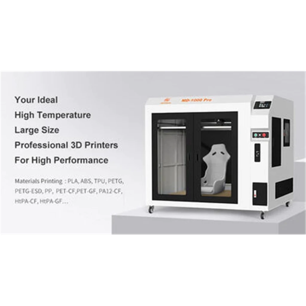 Bir metreküp basım hacmine sahip MINGDA MD-1000 PRO; işlevsel prototipler, fabrika takımları, desenler ve kalıplar ve son kullanıcı ürün parçaları dahil olmak üzere büyük boyutlu parçalar üretmek için tamamıyla kapalı bir endüstriyel 3D yazıcıdır. Mingda MD-1000 PRO büyük boyutu, yüksek kararlılığı ve hassasiyeti ve ayrıca hibrit donanım ve yazılım destekli yapısı sayesinde kolay çalıştırılması ile öne çıkar.
