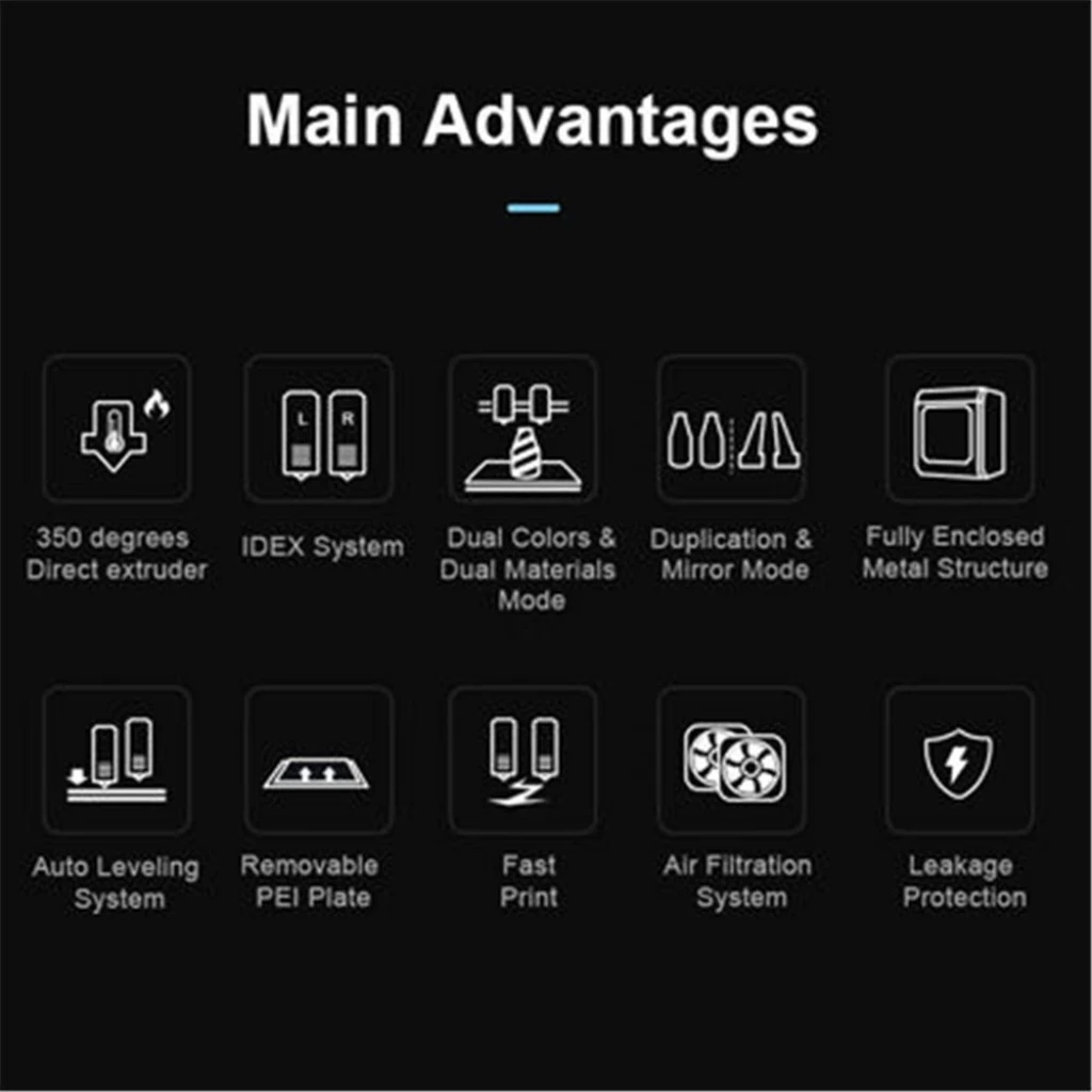 • Mingda MD-400D IDEX 3D Printer etkileyici özellikleri üzerinde toplamış seri üretim ve ileri plastik prototipleme için kullanılabilecek gelişmiş bir 3B yazıcıdı