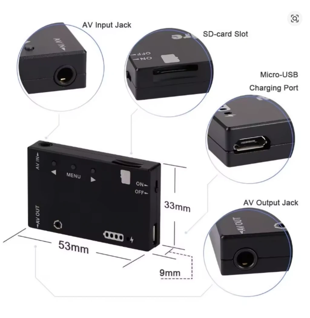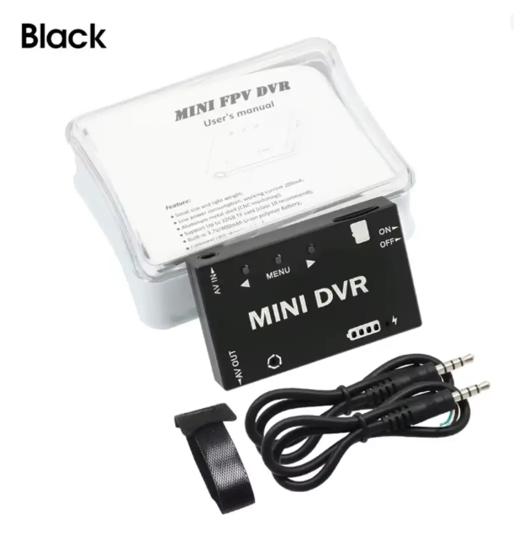 Mini FPV DVR, FPV (First-Person View) dronlar ve RC modeller için kompakt bir video kayıt cihazıdır. Küçük boyutu ve hafifliği sayesinde dronlarda kolayca entegre edilebilir. Analog video sinyallerini kaydederek uçuş deneyimlerinizi kaydetmenize olanak tanır.