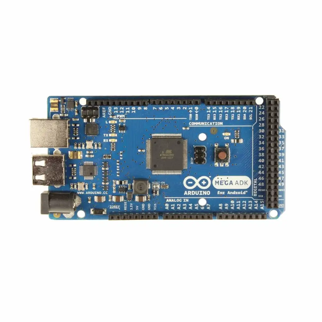 Arduino MEGA ADK, ATmega2560 tabanlı bir mikrodenetleyici kartıdır. MAX3421e IC tabanlı, Android tabanlı telefonlara bağlanmak için bir USB host arayüzüne sahip. 54 dijital giriş / çıkış pimine (15 tanesi PWM çıkış olarak kullanılabilir), 16 analog giriş, 4 UART (donanım seri portu), 16 MHz kristal osilatör, USB bağlantısı, güç girişi, ICSP başlığı, ve bir sıfırlama düğmesi bulunmaktadır.