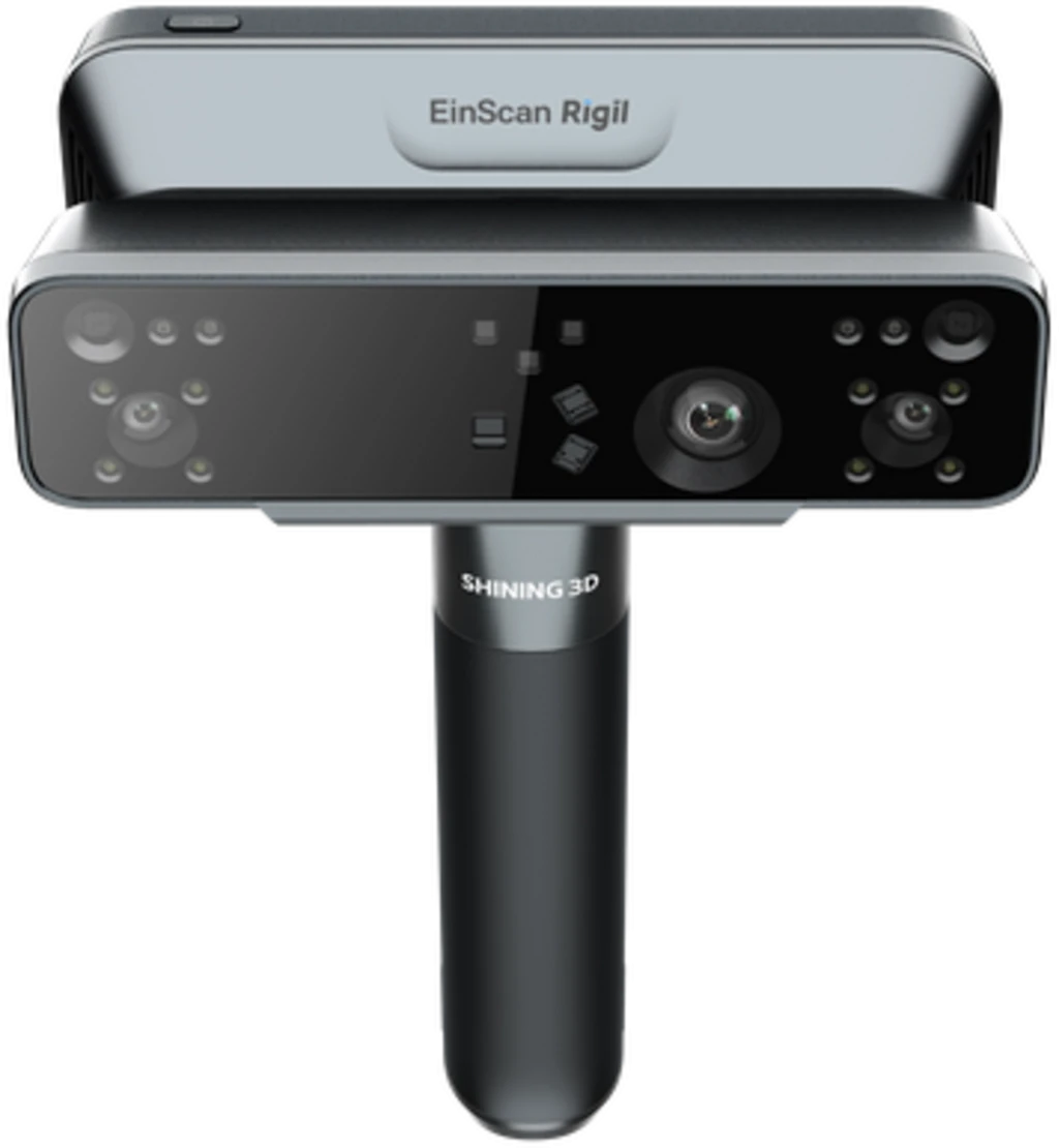 • Shining 3D EinScan Rigil, üç modlu teknolojiye, entegre bir işlemciye ve güçlü bir kablosuz mimariye sahip bir 3D tarayıcıdır. Akıllı hepsi bir arada tasarımıyla Rigil, karmaşık geometrilerden parlak metal yüzeylere kadar her türlü zorluk için profesyonel bir tarama çözümü sunar.