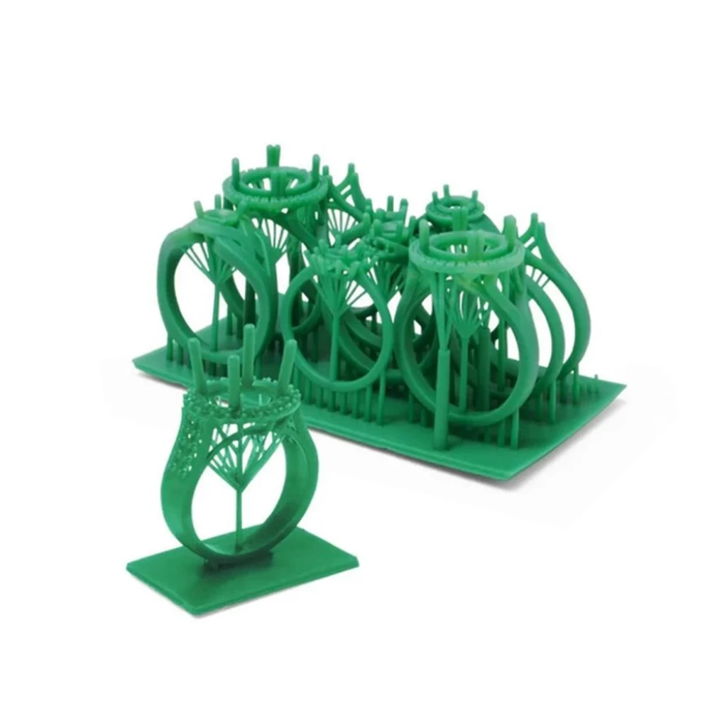 Phrozen 1 kg Döküm Reçinesi - W20 Yeşil, temiz yanma ve sıfır kül içeriği ile güvenilir döküm işlemler için geliştirilmiştir. Hem kuyumculuk hem de diş dökümü için, özellikle milgrain, yüzük ve desenler ile oyulmuş, kabartma metin gibi ince ve hassas özellikli modellerin üretimi için tasarlanmıştır.