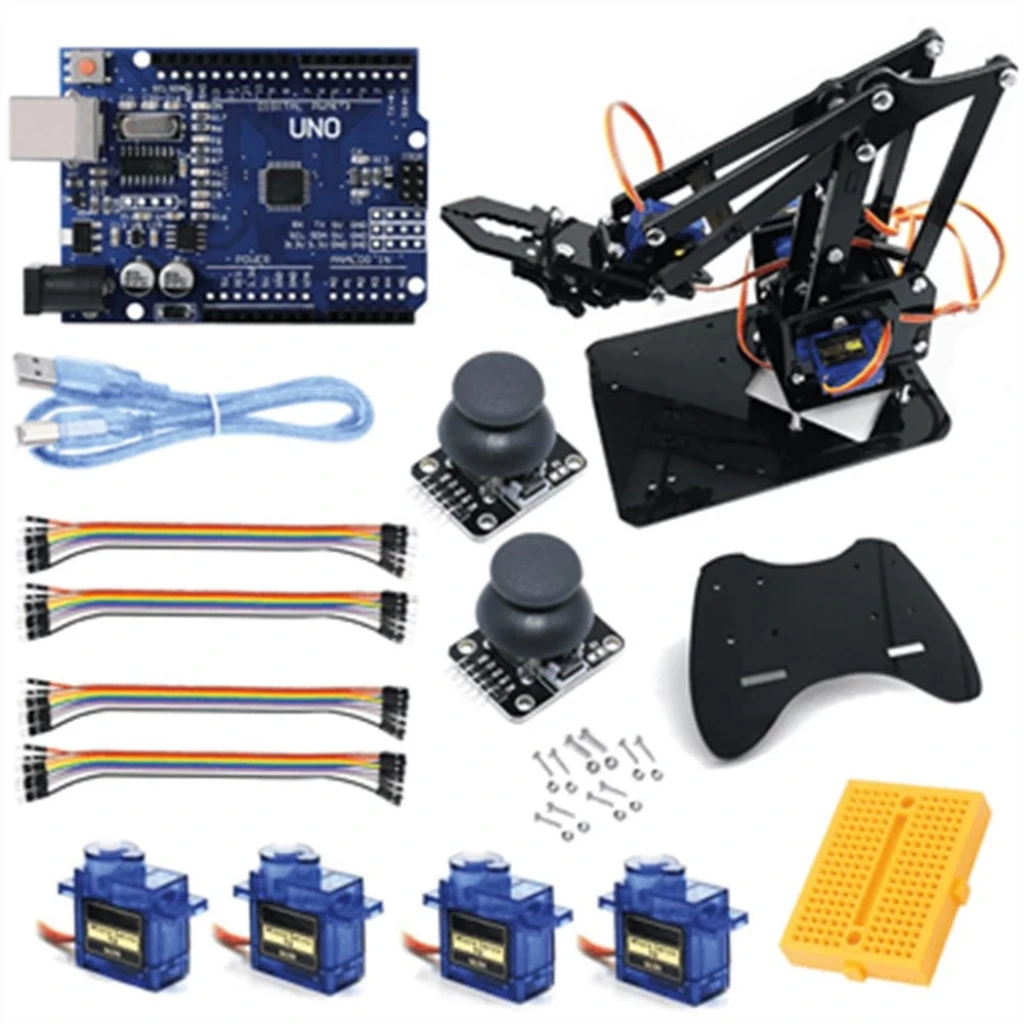 Alt tabandan dönme, yukarı aşağı hareket edebilme ve kıskaç hareketi yapabilme özelliğine sahiptir. Joystick modülü sayesinde robot kolunuzu belirtilen hareketler düzeyinde istediğiniz gibi hareket ettirebilirsiniz.
