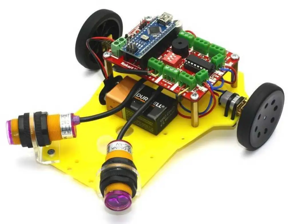 Robotiğe giriş seviyesi için tavsiye ettiğimiz bir engelden kaçan robot kitidir. Kolayca montajını yapabileceğiniz basit robot kitimizle Robotikle tanışabilirsiniz. Engelden kaçan robot yapımı, oldukça eğlenceli ve bir o kadar da elektronik ve yazılımsal olarak faydalıdır. Engel algılayan robot yapımında kullanacağınız devre elemanlarını önceden tanımak ve bu devre elemanlarının kullanım kolaylığı sağlaması önemlidir. Bu noktada Prex engelden kaçan robot kitimizde anakart olarak RoKart V.5 temel robot kartı kullanılmaktadır. RoKart, üzerinde çoklu sensör kullanımına ve çift motor sürücüsü sayesinde motor kullanımına olanak sağlayan Arduino Nano tabanlı robot kontrol kartıdır. Bu kart üzerinde bir çok elektronik devre elemanını barındırmakta olup, komponent karmaşıklığını gidermektedir.