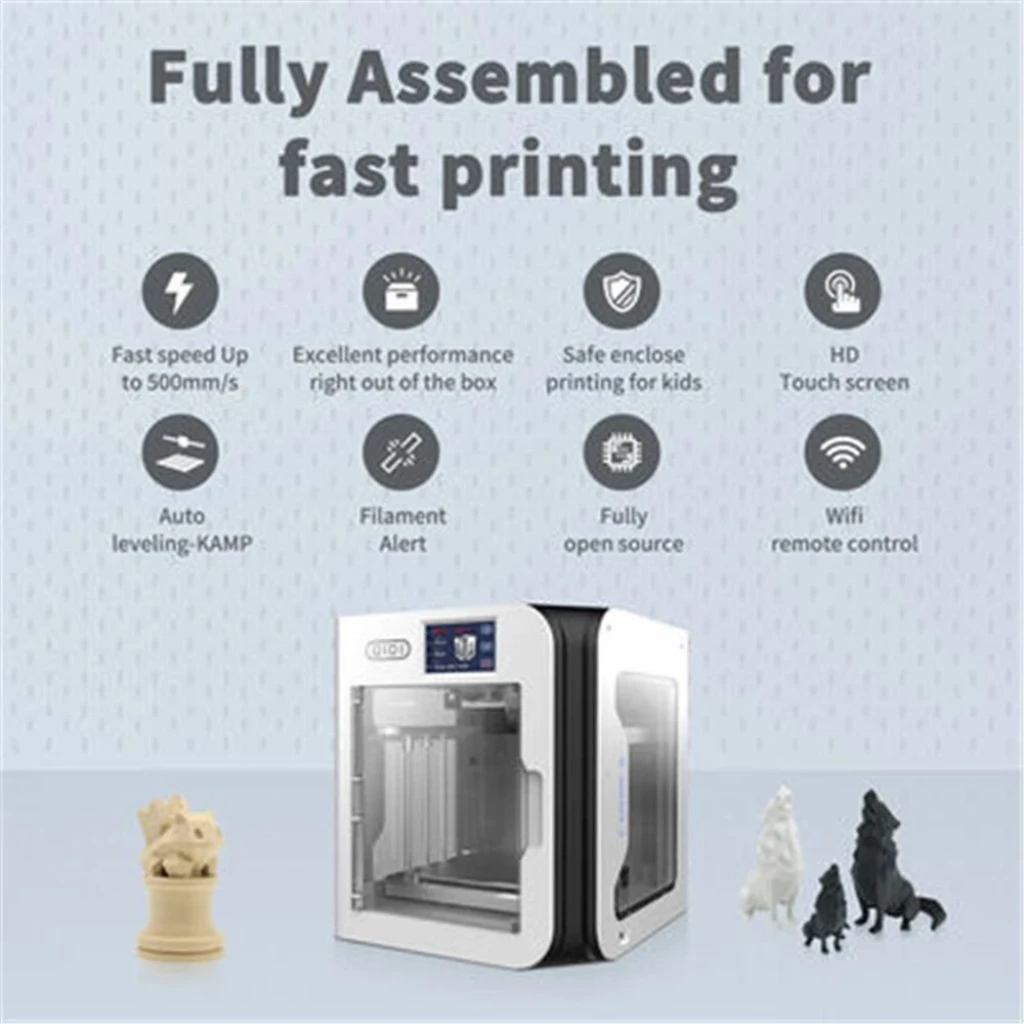QIDI Tech X-Smart 3 Giriş Seviye 3D yazıcı, yüksek hızlarda baskı yaparken ürün kalitesinden ödün vermez ve ince detaylarda neredeyse hiç bozulma olmaz. Bunu, otomatik seviyeleme, pressure advance gibi teknolojilerle donatılması ve dual z hareket ekseni, 9.5:1 redüksiyonlu hızlı sürme sağlayan ekstrüderi 300º sıcaklığa ulaşan ekstrüderi sayesinde gerçekleştirir.