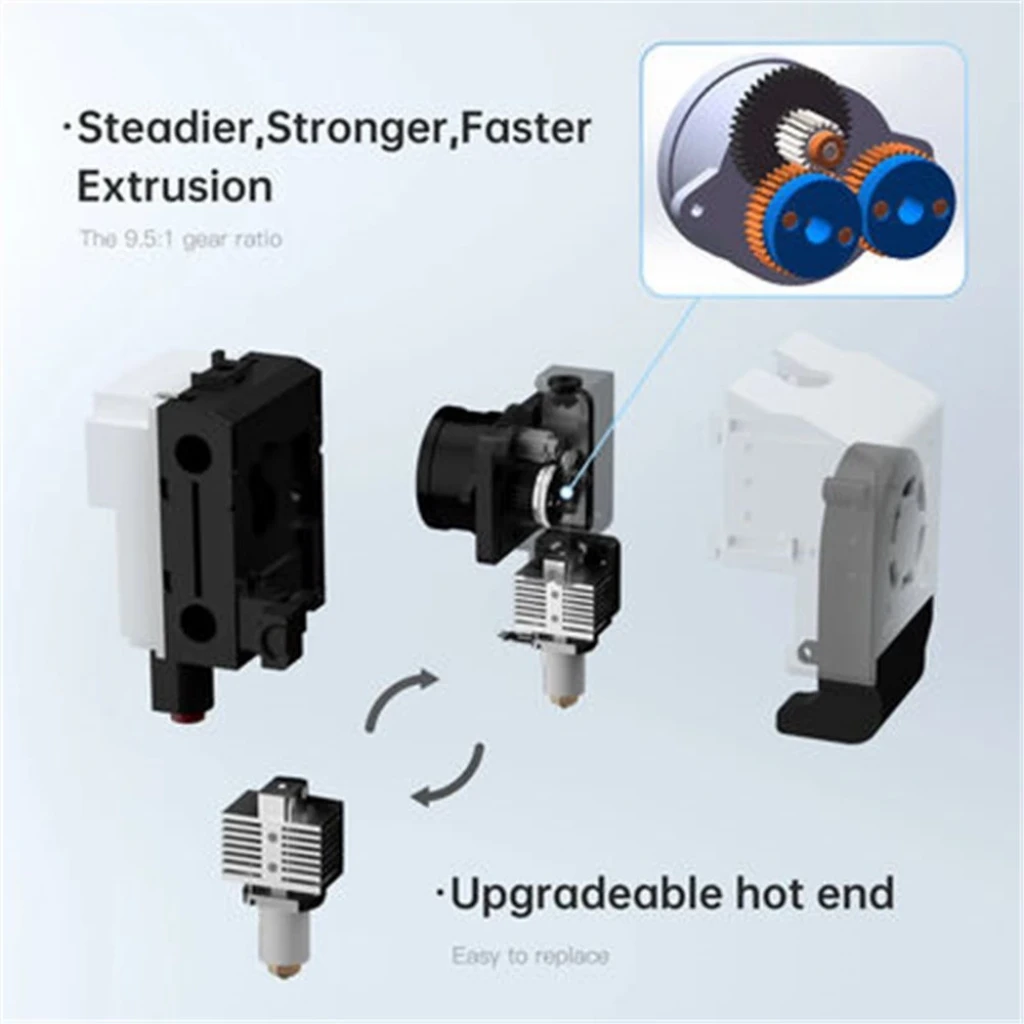 9.5:1 aktarım oranına sahip ekstrüder daha kararlı, daha güçlü ve daha hızlıdır.