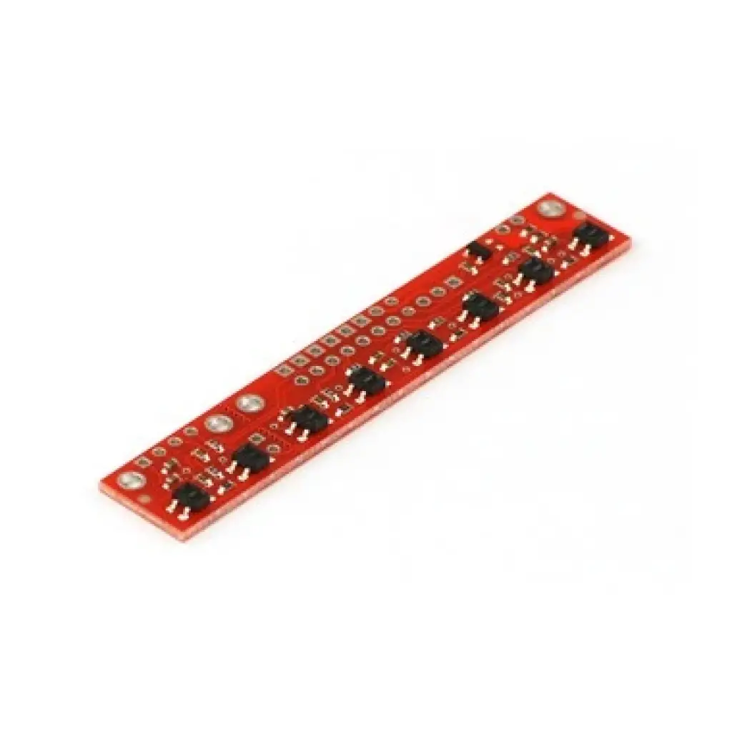 QTR-8RC Çizgi Sensörü Kartı QTR-8RC Çizgi Sensörü Kartı, Sekizli Çizgi Algılayıcı Modül; Qtr-8rc sensör modülü 8 IR LED/fototransistör çifti 10 mm'lik alana monteli, çizgi izleyen robot için mükemmel bir dedektördür. LED serisi mevcut tüketimi yarıya indirmek için düzenlenmiş ve MOSFET, ek hassasiyet ya da güç tasarrufu için LED'leri kapatılmasına izin vermektedir. Her sensör ayrı bir analog voltaj çıkışı sağlar.